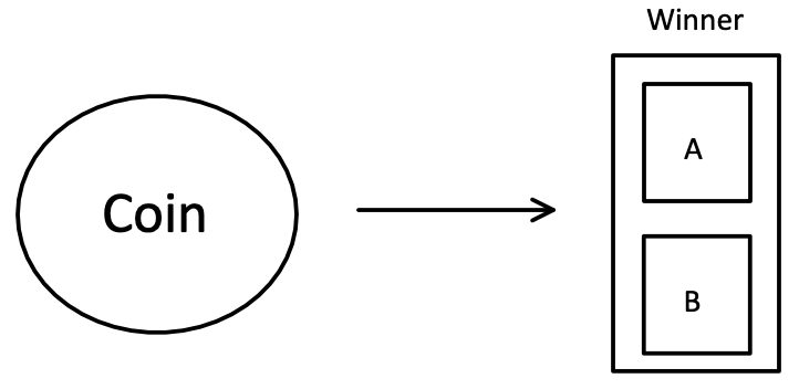 classification. So in our case here, the coin is our “machine learning classifier”. It is “predicting” which “class” the winner is: “Team A” or “Team B”.